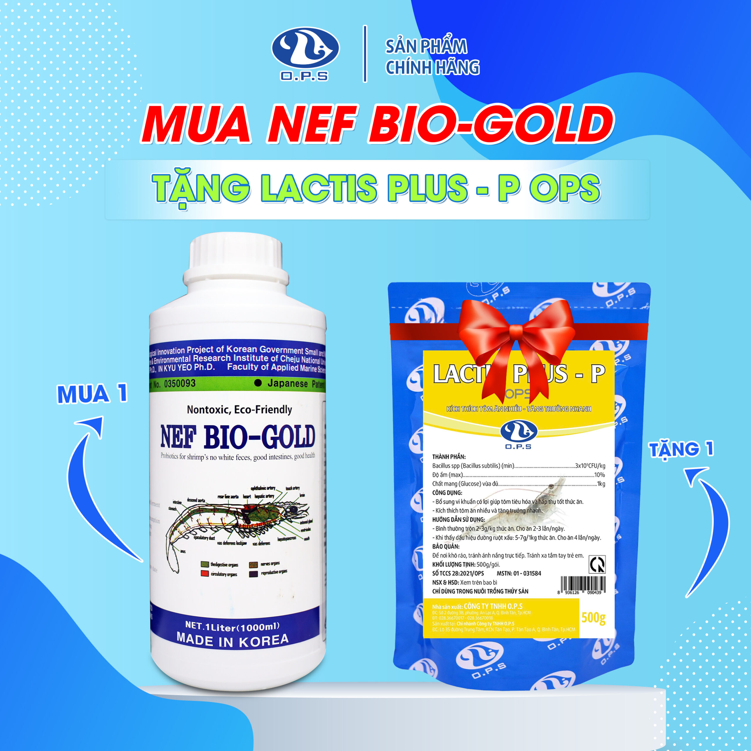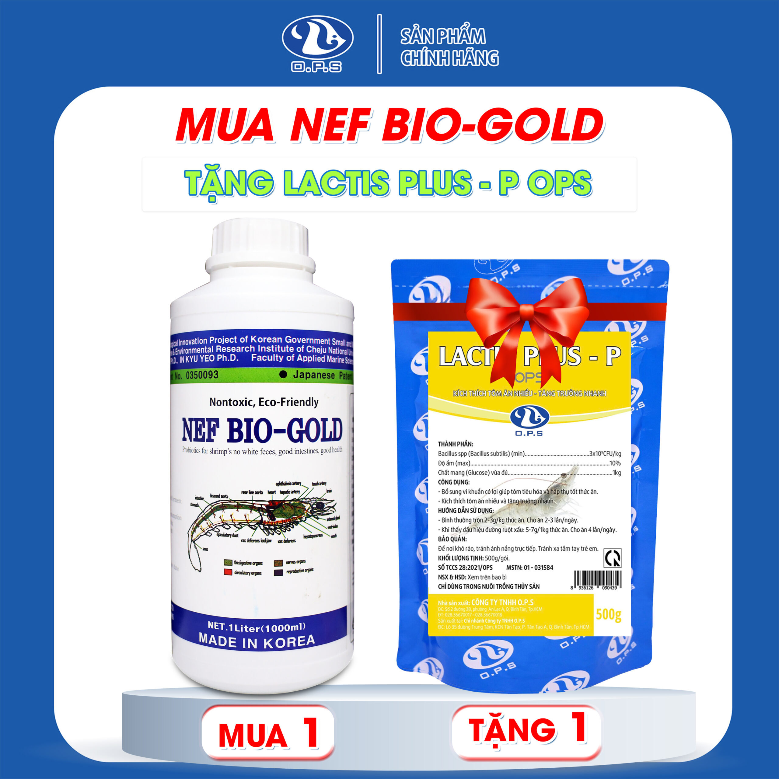 [ MUA 1 TẶNG 1 ] MUA NEF BIO-GOLD TẶNG LACTIS PLUS – P OPS – Hỗ trợ nâng cao hệ tiêu hóa, Bổ sung vi sinh cho tôm